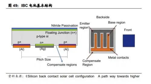 國(guó)海證券指出,IBC電池結(jié)構(gòu)特點(diǎn)鮮明,移除正面柵線(xiàn)最大化光照利用,但生產(chǎn)工藝復(fù)雜。