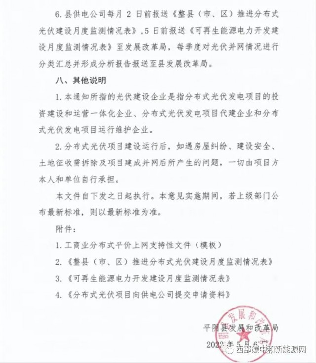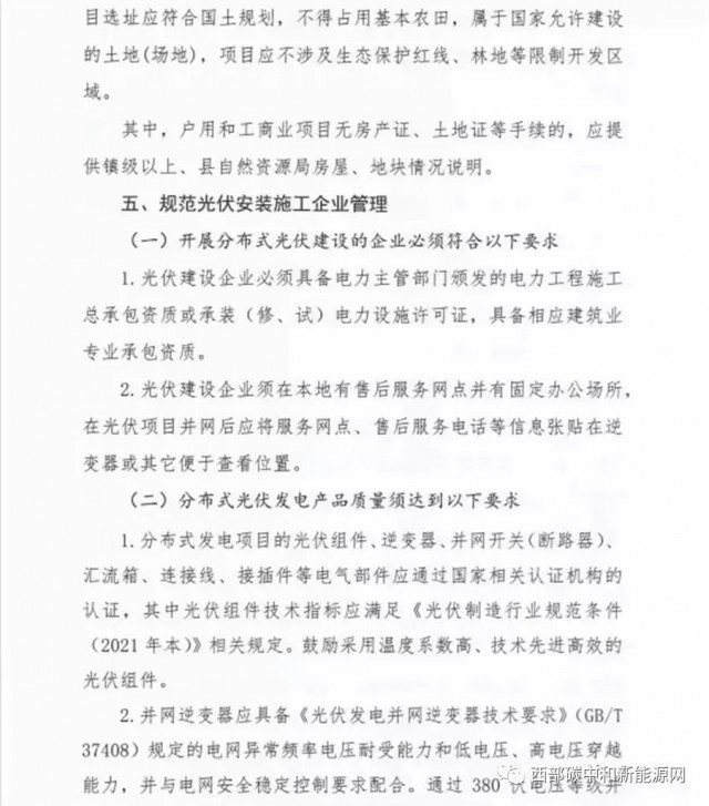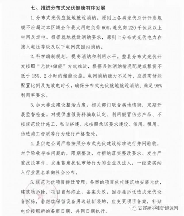 此外,整縣分布式開發(fā)按照“光伏+儲能”方式推進,根據(jù)具體消納情況配建或租賃不低于15%、2小時的儲能設施。電網(wǎng)消納能力不足時,應提高儲能配置比例及充放電時長,確保分布式光伏就地就近消納、滿足95%利用率要求。