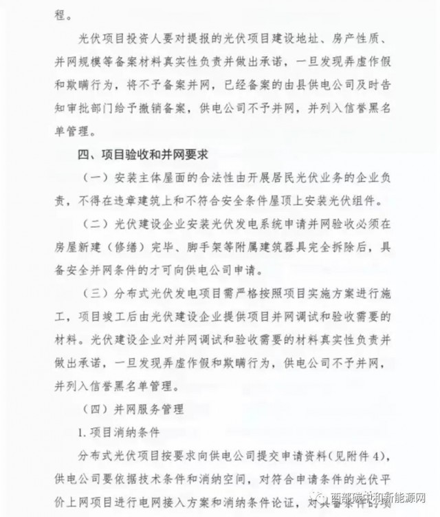山東省濟南市平陰縣發(fā)改局印發(fā)《關于進一步加強分布式光伏項目備案、建設及并網(wǎng)管理的意見》,文件提出分布式光伏應就地就近消納。原創(chuàng)上各類光伏總計開發(fā)規(guī)模不應超過本區(qū)域全年最大用電負荷60%,避免向220千伏及以上電網(wǎng)反送電。根據(jù)就地就近消納要求,原則上分布式光伏電力在接入電壓等級及以下電網(wǎng)范圍內(nèi)消納。