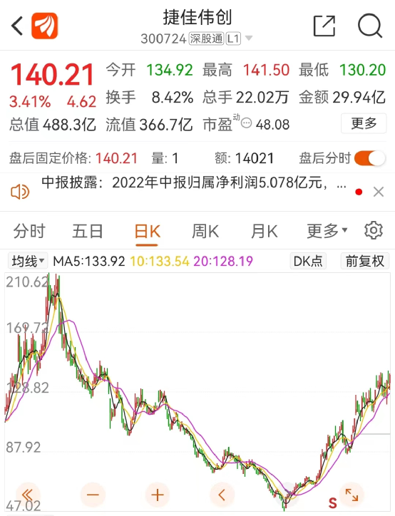 而此次減持計劃披露前,捷佳偉創(chuàng)股價走勢似乎復(fù)制了一年前的情況。在今年4月26日股價達(dá)到最低點47.02元/股之后,捷佳偉創(chuàng)股價便一路上揚(yáng)。截至10日收盤,其股價達(dá)到140.21元/股,較4月底最低股價漲幅達(dá)198.19%。