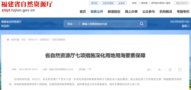 8月2日,福建省自然資源廳發(fā)布了關(guān)于進(jìn)一步深化用地用海要素保障全力穩(wěn)經(jīng)濟(jì)大盤的通知,通知對(duì)福建省用海、用地做了相關(guān)落實(shí)規(guī)定。