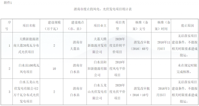 附件:1.渭南市廢止的風(fēng)電、光伏發(fā)電項(xiàng)目統(tǒng)計(jì)表