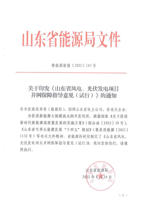 為促進(jìn)新能源大規(guī)模高比例開(kāi)發(fā)利用,根據(jù)國(guó)家《關(guān)于促進(jìn)新時(shí)代新能源高質(zhì)量發(fā)展的實(shí)施方案》(國(guó)辦函〔2022〕39號(hào))《山東省可再生能源發(fā)展“十四五”規(guī)劃》(魯發(fā)改能源〔2021〕1152號(hào))等有關(guān)文件精神,省能源局研究制定了《山東省風(fēng)電、光伏發(fā)電項(xiàng)目并網(wǎng)保障指導(dǎo)意見(jiàn)(試行)》,現(xiàn)印發(fā)給你們,請(qǐng)遵照?qǐng)?zhí)行。