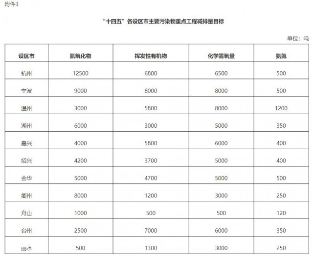 3.“十四五”各設(shè)區(qū)市主要污染物重點(diǎn)工程減排量目標(biāo)
