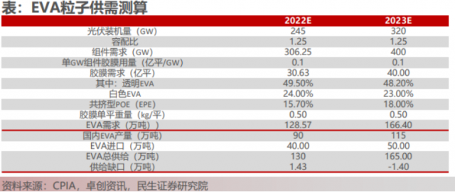 大家都在分析未來(lái)卡脖子在哪?行業(yè)分析師們經(jīng)過(guò)盤(pán)算產(chǎn)能情況得出EVA粒子會(huì)是比較缺的環(huán)節(jié)。