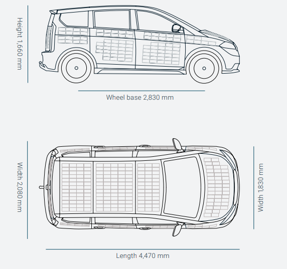 Sion配置了一個54 kWh的LFP電池組。電池并不大。但是這款車還有后招來確保續(xù)航里程。Sion的發(fā)動機罩,擋泥板,側(cè)面,車頂和車輛后部裝有太陽能電池。456個太陽能半電池和整個車身融合。這就是這款車的特別之處。Sono Motors表示這些半電池每周可增加112-245公里的續(xù)航里程。平均每天可以增加16-35公里。Sono Motors表示,如果這款車在德國市區(qū)使用,充電量是同一細分市場的傳統(tǒng)電動汽車的四分之一。