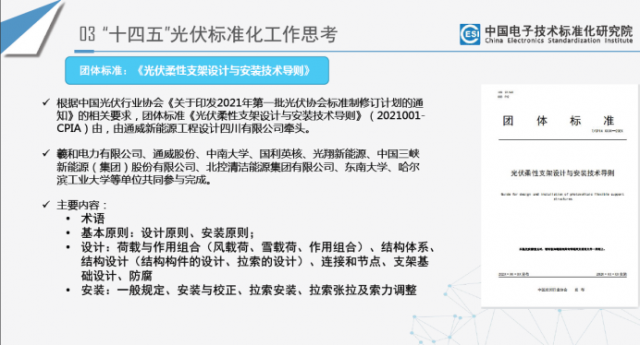 對(duì)于柔性支架相關(guān)的標(biāo)準(zhǔn)制定工作,裴會(huì)川秘書(shū)長(zhǎng)指出,目前有團(tuán)體標(biāo)準(zhǔn)《光伏柔性支架設(shè)計(jì)與安裝技術(shù)導(dǎo)則》(2021001- CPIA)正在評(píng)審中,我們將有序推進(jìn)相關(guān)柔性支架標(biāo)準(zhǔn)制定工作,為行業(yè)技術(shù)發(fā)展把好關(guān)。