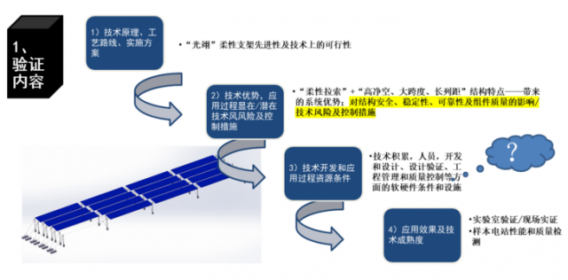 本次柔性支架驗(yàn)證采用技術(shù)評(píng)審和樣本電站檢測(cè)評(píng)估模式,驗(yàn)證內(nèi)容詳見(jiàn)下圖。