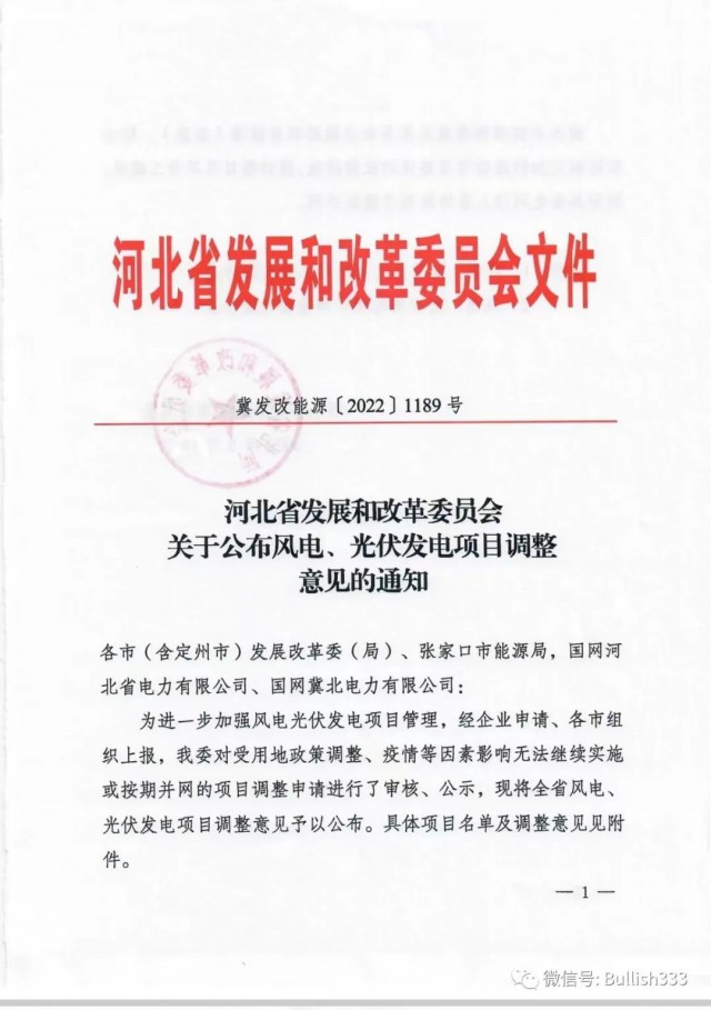 9月16日,河北發(fā)改委正式印發(fā)《關(guān)于公布風(fēng)電、光伏發(fā)電項(xiàng)目調(diào)整意見的通知》,對受用地政策調(diào)整、疫情等因素影響無法繼續(xù)實(shí)施或按期并網(wǎng)的項(xiàng)目進(jìn)行了調(diào)整。
