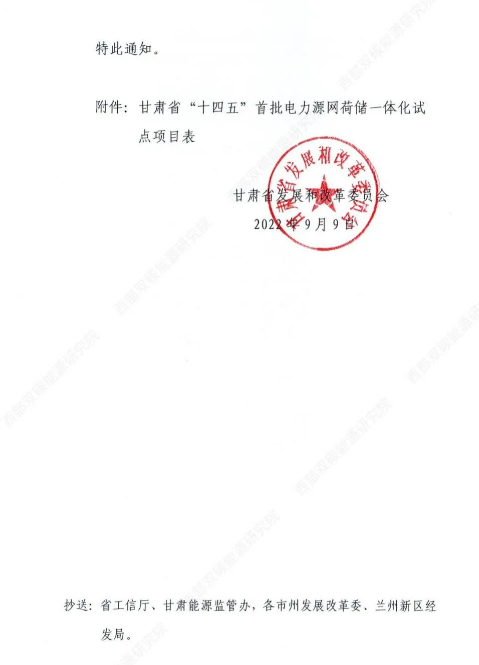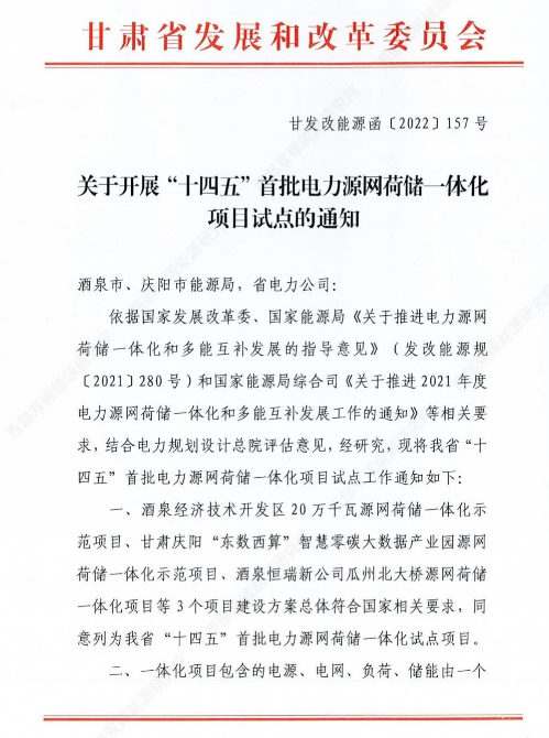 9月9日,甘肅省發(fā)改委印發(fā)《關(guān)于開展“十四五”首批電力源網(wǎng)荷儲一體化 項目試點(diǎn)的通知》。