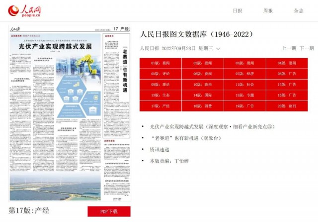 9月28日,《人民日報》發(fā)表題為《光伏產(chǎn)業(yè)實現(xiàn)跨越式發(fā)展》的文章。該文通過對地方政府、相關(guān)企業(yè)、行業(yè)專家、當(dāng)?shù)鼐用裼脩舻牟稍L,指出我國光伏產(chǎn)業(yè)鏈國際競爭優(yōu)勢凸顯,呈現(xiàn)分布式與集中式發(fā)展并舉、國際國內(nèi)市場快速擴(kuò)張、技術(shù)創(chuàng)新推動光伏浮點成本下降等特點?!半p碳”目標(biāo)背景下,光伏產(chǎn)業(yè)在迎來發(fā)展機(jī)遇的同時,也面臨著諸如產(chǎn)業(yè)供應(yīng)鏈價格高位運行、部分國家設(shè)立綠色貿(mào)易壁壘等帶來的挑戰(zhàn)。