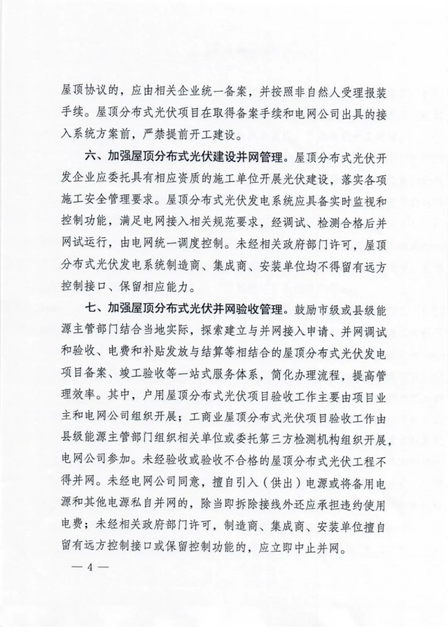 以自然人名義提交的并網(wǎng)申請資料中,如果含有以企業(yè)名義租賃自然人屋頂協(xié)議的,應(yīng)由相關(guān)企業(yè)統(tǒng)一備案,并按照非自然人受理報裝 手續(xù)。屋頂分布式光伏項目在取得備案手續(xù)和電網(wǎng)公司出具的接入系統(tǒng)方案前,嚴禁提前開工建設(shè)。