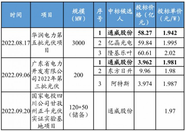 圖:通威股份光伏組件中標(biāo)情況,來源:東吳證券