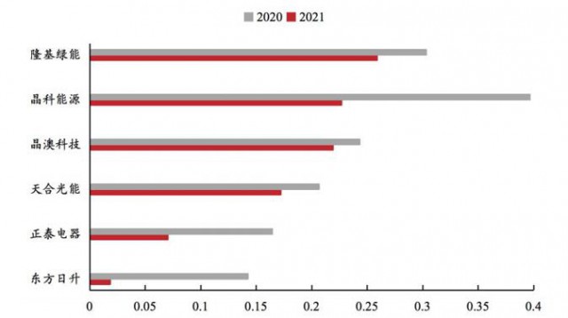 圖:2020-2021組件業(yè)務(wù)單瓦盈利情況(元/W),來源:Wind,東亞前海證券研究所