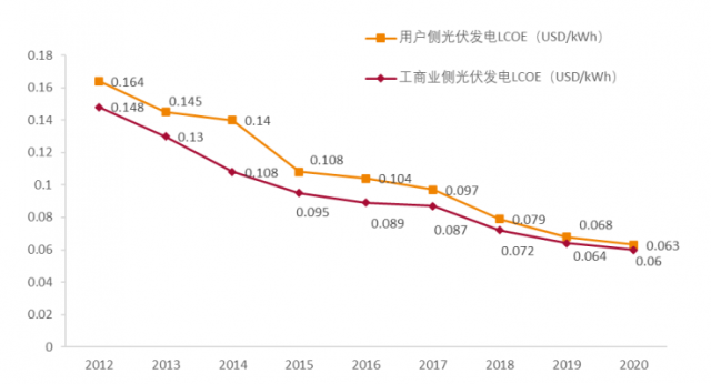 圖:2012-2020光伏發(fā)電度電成本下降趨勢,來源:天風(fēng)證券