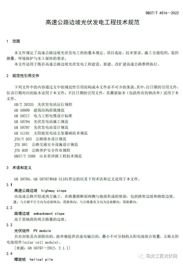 山東高速集團(tuán)黨委常委、副總經(jīng)理石振源回答說,本標(biāo)準(zhǔn)是在現(xiàn)行光伏發(fā)電工程建設(shè)技術(shù)標(biāo)準(zhǔn)體系下,根據(jù)高速公路特點(diǎn)制定的。標(biāo)準(zhǔn)規(guī)定了邊坡光伏發(fā)電工程的項(xiàng)目選址、施工交通組織、監(jiān)控測量、環(huán)境保護(hù)與水土保持等技術(shù)要求,內(nèi)容詳細(xì)、全面、完整,具有較強(qiáng)的專業(yè)性和操作性。