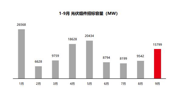 ?圖:據(jù)公開數(shù)據(jù)統(tǒng)計,2022年1-9月光伏組件招標容量(MW)
