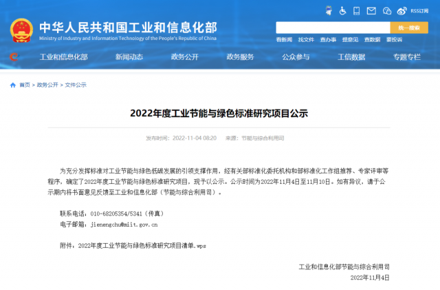 公示時(shí)間為2022年11月4日至11月10日。如有異議,可在公示期內(nèi)將書面意見反饋至工業(yè)和信息化部(節(jié)能與綜合利用司)。