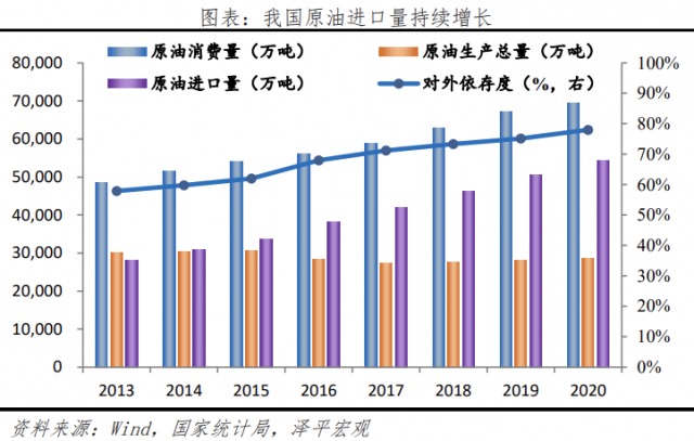 二是對(duì)國家能源安全的保障。在交通運(yùn)輸領(lǐng)域,我國石油消費(fèi)量正不斷走高,從2015年的5.43億噸/年上升至2020年的7.36億噸/年。然而我國原油產(chǎn)量則一直維持在2億噸/年。供需矛盾致使我國的原油進(jìn)口量持續(xù)增長,對(duì)外依存度超過70%。為保證國家的能源安全和經(jīng)濟(jì)的可持續(xù)發(fā)展,能源消費(fèi)結(jié)構(gòu)亟需升級(jí)。而發(fā)展新能源發(fā)電有利于減少我國對(duì)能源進(jìn)口的依賴,保障國家能源安全。