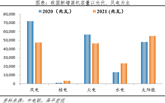 光伏是新能源發(fā)電端建設(shè)的核心領(lǐng)域之一,中電聯(lián)數(shù)據(jù)顯示,2021年我國太陽能新增裝機(jī)容量為54930兆瓦,同比增長14.0%,占新能源發(fā)電新增裝機(jī)總?cè)萘康?2%。