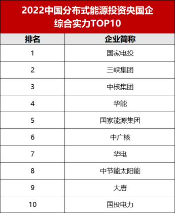 在各大央國企之間,根據(jù)已有項目規(guī)模、計劃裝機數(shù)量、以及近幾年行業(yè)的影響力綜合評估,各大能源集團之間呈現(xiàn)出一定差距。索比光伏網(wǎng)整理《2022年分布式能源投資央國企綜合實力TOP10》企業(yè)榜單,僅供參考。
