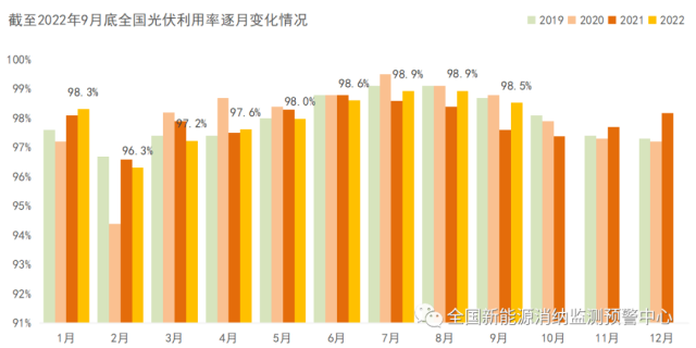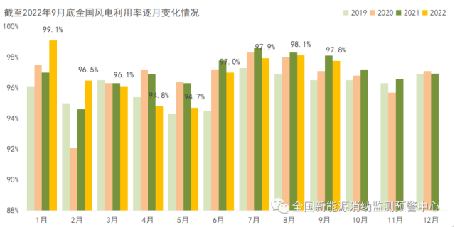 截至9月底全國風(fēng)電利用率逐月變化情況