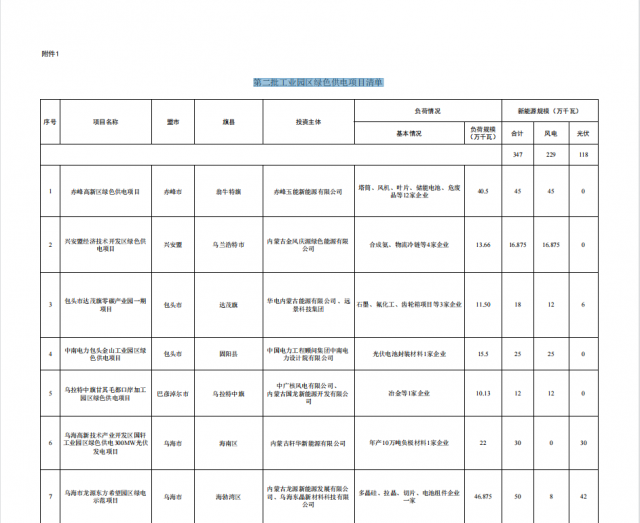 內(nèi)蒙古自治區(qū)能源局關(guān)于印發(fā)第二批工業(yè)園區(qū)綠色供電項目清單的通知