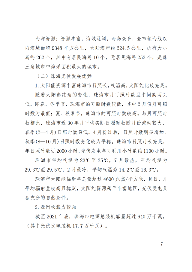 珠海市發(fā)展和改革局關于印發(fā)《珠海市光伏電力發(fā)展規(guī)劃(2022-2025年)》的通知