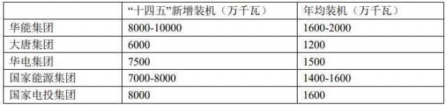 5、五大發(fā)電集團“十四五”裝機規(guī)劃。