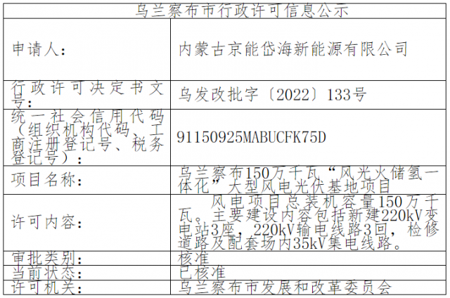 內(nèi)蒙古日?qǐng)?bào)發(fā)布文章稱(chēng),烏蘭察布岱海發(fā)電150萬(wàn)千瓦風(fēng)光火儲(chǔ)氫一體項(xiàng)目已列入國(guó)家第二批風(fēng)光大基地建設(shè)名單。該項(xiàng)目建設(shè)符合國(guó)家多能互補(bǔ)發(fā)展新能源政策,有助于“碳達(dá)峰、碳中和”目標(biāo)的實(shí)現(xiàn),能夠充分利用同一外送區(qū)域既有煤電的深度調(diào)峰能力,實(shí)現(xiàn)風(fēng)光火儲(chǔ)、多能互補(bǔ),提高“岱?!f(wàn)全”外送輸電通道的可再生能源占比,緩解京津冀地區(qū)日益增長(zhǎng)的清潔能源電能需求,提高清潔能源的利用效率,為煤電與風(fēng)電、光伏、制氫綜合應(yīng)用提供創(chuàng)新示范,具有重大的應(yīng)用意義。