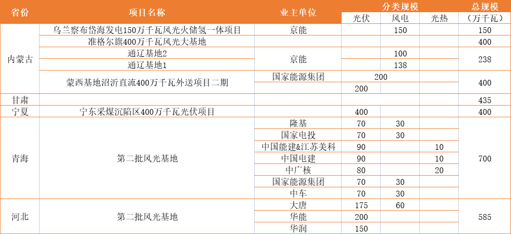 說明:上述數據通過公開信息整理,各企業(yè)數據存在未明確項目,具體以企業(yè)官方數據為準。此外,大基地存在聯(lián)合體業(yè)主,本表數據以牽頭企業(yè)為主。