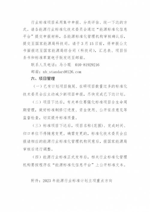 國家能源局綜合司關(guān)于印發(fā)《2023年能源行業(yè)標(biāo)準(zhǔn)計劃立項指南》的通知