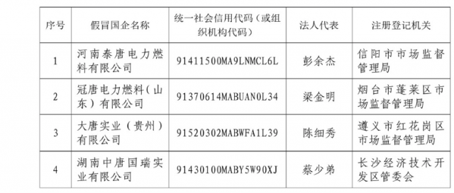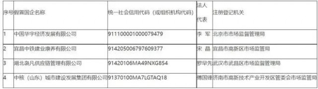 中央企業(yè)公告的假冒國企名單匯總(第一批)