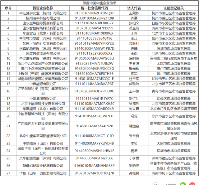 3月22日,華能新能源股份有限公司發(fā)布嚴(yán)正聲明,稱有不法分子通過偽造華能新能源股份有限公司證照和印章,在全國多地將17家企業(yè)登記為華能新能源下屬子公司,并可能存在涉嫌以華能新能源及所屬企業(yè)名義開展經(jīng)營活動的情形,其中部分企業(yè)侵犯了“華能”字號,對華能新能源的聲譽造成不良影響。