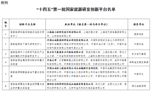 附件:“十四五”第一批國家能源研發(fā)創(chuàng)新平臺名單