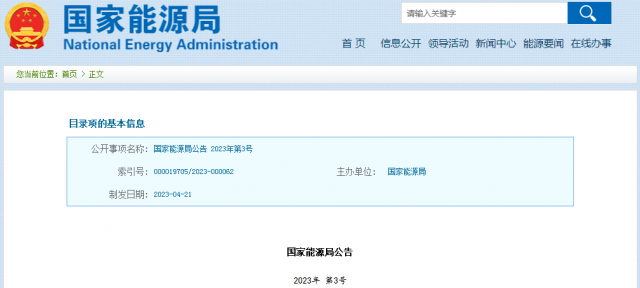 國家能源局公告