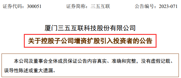 7月18日,三五互聯(lián)(300051.SZ)公告稱(chēng),為抓住機(jī)遇做大做強(qiáng)光伏新能源業(yè)務(wù),加速光伏產(chǎn)業(yè)布局,控股子公司天津通訊擬以增資前估值20億元人民幣增資擴(kuò)股引入十位投資者,由其以貨幣方式向天津通訊增資1.95億元,合計(jì)獲得天津通訊增資后8.89%股權(quán)。