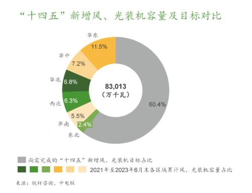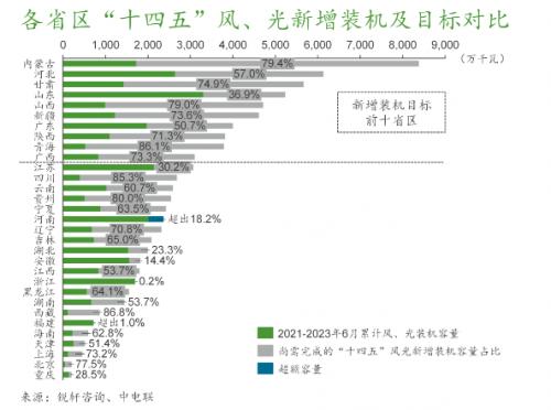 截至2023年6月末,全國31省區(qū)(不含港澳臺)發(fā)布的“十四五”期末累計風(fēng)、光裝機目標(biāo)共計13.7億千瓦,包括此期間新增風(fēng)、光裝機目標(biāo)8.3億千瓦。
