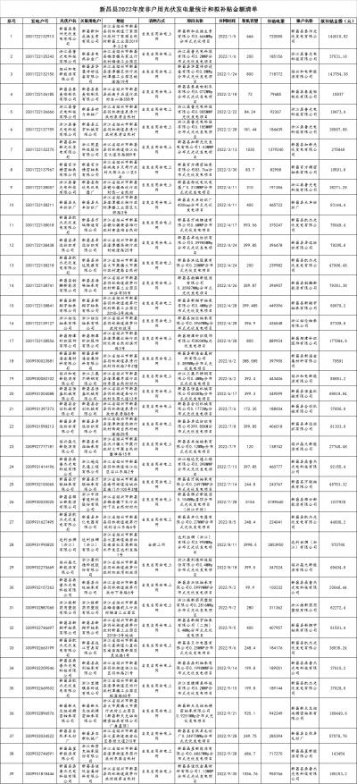10月25日,浙江新昌縣發(fā)改局發(fā)布《關(guān)于2022年度全縣非戶用光伏發(fā)電量統(tǒng)計(jì)及擬補(bǔ)貼金額的公示》。本次擬補(bǔ)貼項(xiàng)目全部為戶用分布式項(xiàng)目,總計(jì)39個項(xiàng)目,容量24.14MW,補(bǔ)貼金額總計(jì)456.105萬元。