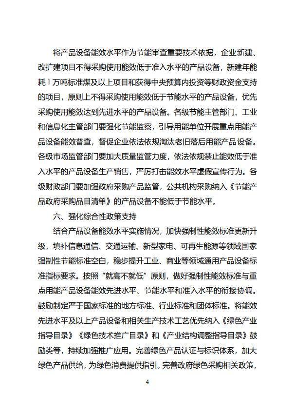 結(jié)合產(chǎn)品設(shè)備能效水平實(shí)施情況,加快強(qiáng)制性能效標(biāo)準(zhǔn)更新升級(jí),填補(bǔ)可再生能源等領(lǐng)域國家強(qiáng)制性節(jié)能標(biāo)準(zhǔn)空白,穩(wěn)步提升工業(yè)、商業(yè)等領(lǐng)域通用產(chǎn)品設(shè)備標(biāo)準(zhǔn)指標(biāo)要求。