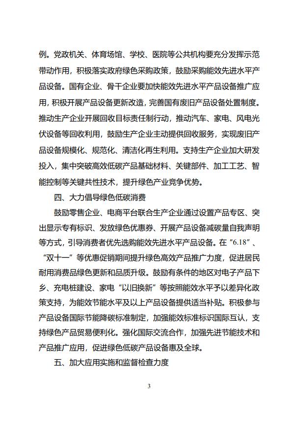 為全面貫徹黨的二十大精神,加快節(jié)能降碳先進(jìn)技術(shù)研發(fā)和推廣應(yīng)用,推動(dòng)重點(diǎn)用能產(chǎn)品設(shè)備更新改造,更高水平更高質(zhì)量做好節(jié)能工作,助力實(shí)現(xiàn)碳達(dá)峰碳中和,按照《國家發(fā)展改革委等部門關(guān)于統(tǒng)籌節(jié)能降碳和回收利用加快重點(diǎn)領(lǐng)域產(chǎn)品設(shè)備更新改造的指導(dǎo)意見》(發(fā)改環(huán)資〔2023〕178號(hào)),我們會(huì)同有關(guān)部門研究起草了《關(guān)于發(fā)布〈重點(diǎn)用能產(chǎn)品設(shè)備能效先進(jìn)水平、節(jié)能水平和準(zhǔn)入水平(2023年版)〉的通知》(征求意見稿),現(xiàn)向社會(huì)公開征求意見。