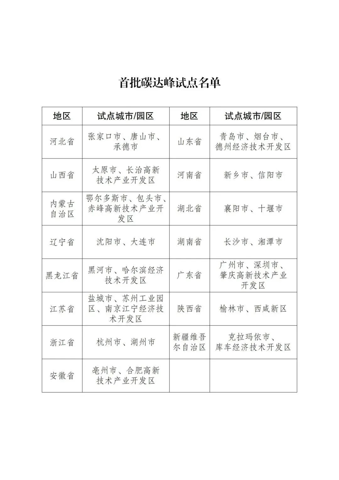 印發(fā)首批碳達(dá)峰試點(diǎn)名單的通知