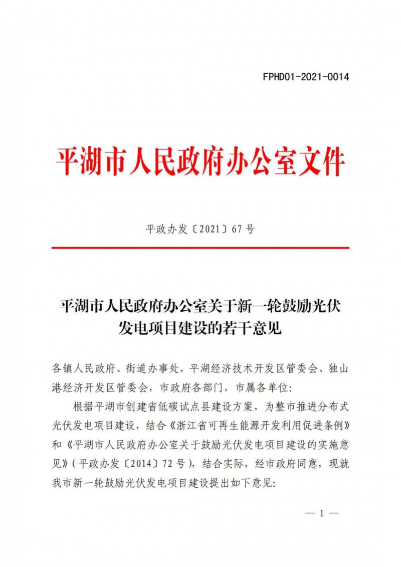 1月11日,平湖市人民政府發(fā)布了關(guān)于新一輪鼓勵(lì)光伏發(fā)電項(xiàng)目建設(shè)的若干意見(jiàn)。明確到“十四五”末,平湖市光伏發(fā)電裝機(jī)容量達(dá)到600兆瓦以上,實(shí)際新增200兆瓦以上,年平均新增裝機(jī)容量在40兆瓦以上。