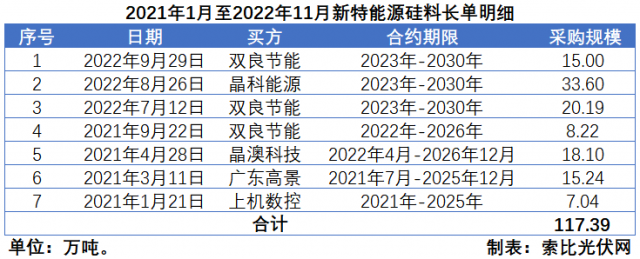 新特能源簽署7筆長單,規(guī)模合計(jì)117.39萬噸。
