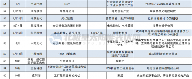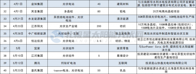 各家公司投資跨界方式不盡相同,有通過收購、設(shè)立光伏公司,或是投資新建光伏項(xiàng)目,或是與其他企業(yè)共建新公司,進(jìn)入領(lǐng)域從多晶硅、硅片、電池組件、光伏膠膜輔材以及光伏電站等多個細(xì)分賽道。