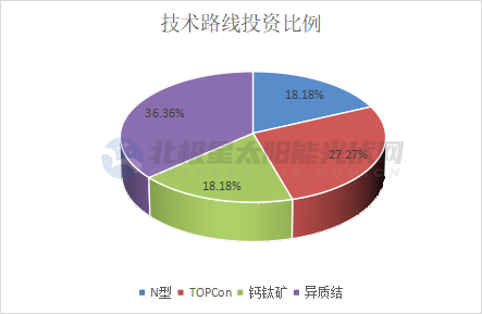 此外,電池組件環(huán)節(jié)也是跨界投資熱門,吸引了包括正業(yè)科技、宏潤建設(shè)、三五互聯(lián)、奧聯(lián)電子等18家企業(yè)投資。從投資路線來看,主要以N型為主,其中投資異質(zhì)結(jié)的企業(yè)占到跨界電池企業(yè)總比的36.36%,投資企業(yè)以天宸股份、水發(fā)能源集團(tuán)等為代表;TOPCon占27.27%,以三一集團(tuán)、皇氏集團(tuán)、棒杰股份、賽福天等為代表。其次,被稱為“未來技術(shù)”的鈣鈦礦也獲企業(yè)青睞,吸引如騰訊、奧聯(lián)電子等企業(yè)入局投資。