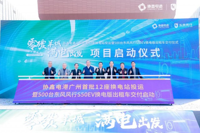 本次啟動站點為協(xié)鑫電港自研單通道換電站,單站每日可服務336車次,單次換電僅需90秒,羊城首批入網(wǎng)出租車司機將享受極致補能體驗?;顒蝇F(xiàn)場,東風柳汽乘用車銷售公司副總經(jīng)理陳經(jīng)新、協(xié)鑫能科乘用車事業(yè)部總經(jīng)理諸葛環(huán)環(huán)代表雙方發(fā)布聯(lián)名款東風風行S50EV換電版出租車。“協(xié)鑫能科”與“東風風行”的雙logo成為這款車型的醒目尾標,充分體現(xiàn)了協(xié)鑫能科以車為核,與車企深度融合,雙向賦能,助力廣州在城市交通領域率先實現(xiàn)“雙碳”目標的決心。隨著未來更多車輛投入運營,將有更多市民體驗到S50EV的優(yōu)秀性能和協(xié)鑫電港的90秒換電優(yōu)勢。