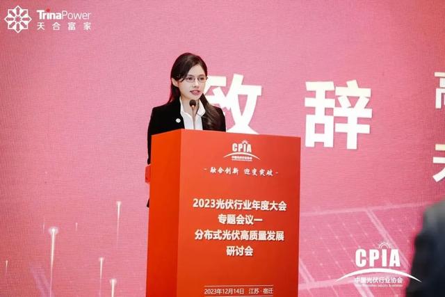 2023年12月14日,為深入探討新形勢(shì)下光伏市場(chǎng)發(fā)展情況、發(fā)展方向與路徑,促進(jìn)行業(yè)交流與溝通,由中國(guó)光伏行業(yè)協(xié)會(huì)與宿遷市人民政府聯(lián)合主辦的“2023光伏行業(yè)年度大會(huì)”在宿遷盛大開(kāi)幕,天合富家能源股份有限公司董事長(zhǎng)高海純應(yīng)邀出席并為分布式光伏高質(zhì)量發(fā)展研討會(huì)致辭。