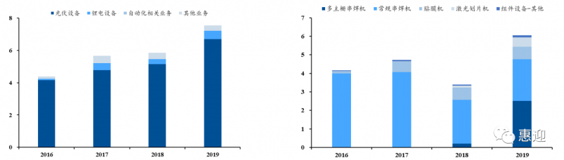 公司于 2009 年進(jìn)入光伏行業(yè),致力于光伏電池和光伏組件的自動(dòng)化成套設(shè)備的開發(fā)設(shè)計(jì)、生產(chǎn)和銷售,于 2013 年首創(chuàng)國(guó)產(chǎn)電池片串焊機(jī),在 2017 年成功研發(fā)并量產(chǎn)多主柵串焊機(jī)和半片串焊機(jī)。公司光伏設(shè)備業(yè)務(wù)的政策聚焦于行業(yè)優(yōu)質(zhì)客戶,經(jīng)過(guò)多年來(lái)的積累,已經(jīng)形成較強(qiáng)的技術(shù)優(yōu)勢(shì)和品牌效應(yīng),設(shè)備受到隆基股份、晶科能源、中國(guó)節(jié)能等業(yè)內(nèi)一流廠商的青睞。