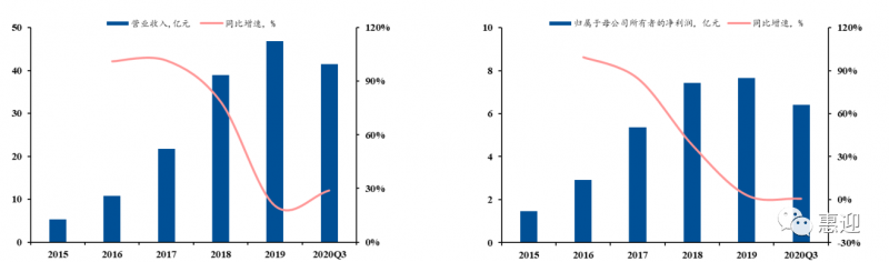 公司是光伏自動(dòng)化組件設(shè)備的頭部供應(yīng)商,下游客戶涵蓋國(guó)內(nèi)多家知名光伏組件企業(yè),同時(shí)積極布局新型組件設(shè)備,向壁壘較高的電池設(shè)備領(lǐng)域延伸,探索新增長(zhǎng)點(diǎn)。2015-2019 年,公司業(yè)績(jī)大幅增長(zhǎng),營(yíng)業(yè)收入從 2.92 億元增長(zhǎng)至 7.9 億元,CAGR 為 31.08%。截止 2020 年第三季度,公司的歸母凈利潤(rùn)為 0.65 億元,同比增長(zhǎng) 65%,超過(guò) 2019 年全年歸母凈利潤(rùn)。合同負(fù)債已達(dá) 3.71 億元,為 2021 年業(yè)績(jī)奠定良好基礎(chǔ)。2019 年,光伏組件自動(dòng)化生產(chǎn)線作為公司的主營(yíng)業(yè)務(wù),占總營(yíng)收的 93.11%,輔之以串焊機(jī)、層壓機(jī)等價(jià)值量較高的單機(jī)設(shè)備。